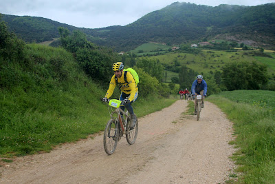 Los dos primeros se saltaron sin querer un cruce y menos mal que les avisé! a saber dónde iban a acabar sino jeje. Ya vamos llegando al alto donde al primero que pase le regalan un reloj. Al final se lo llevó Guzman por unos segundos, justo aquí era la parte más dura del circuito, un tramo que había que hacerlo a pata.